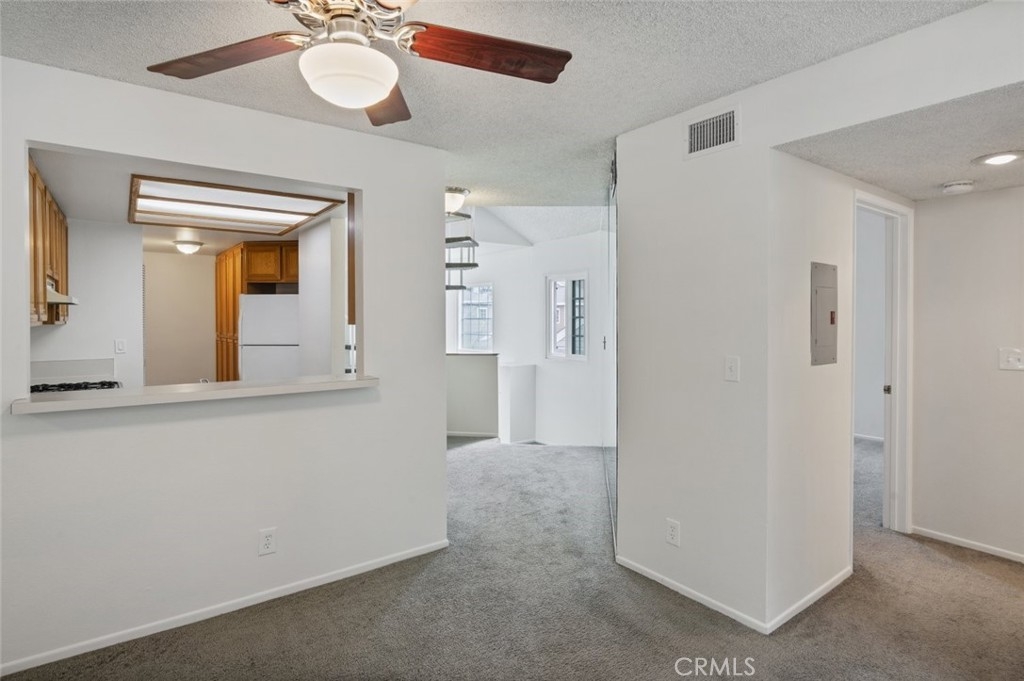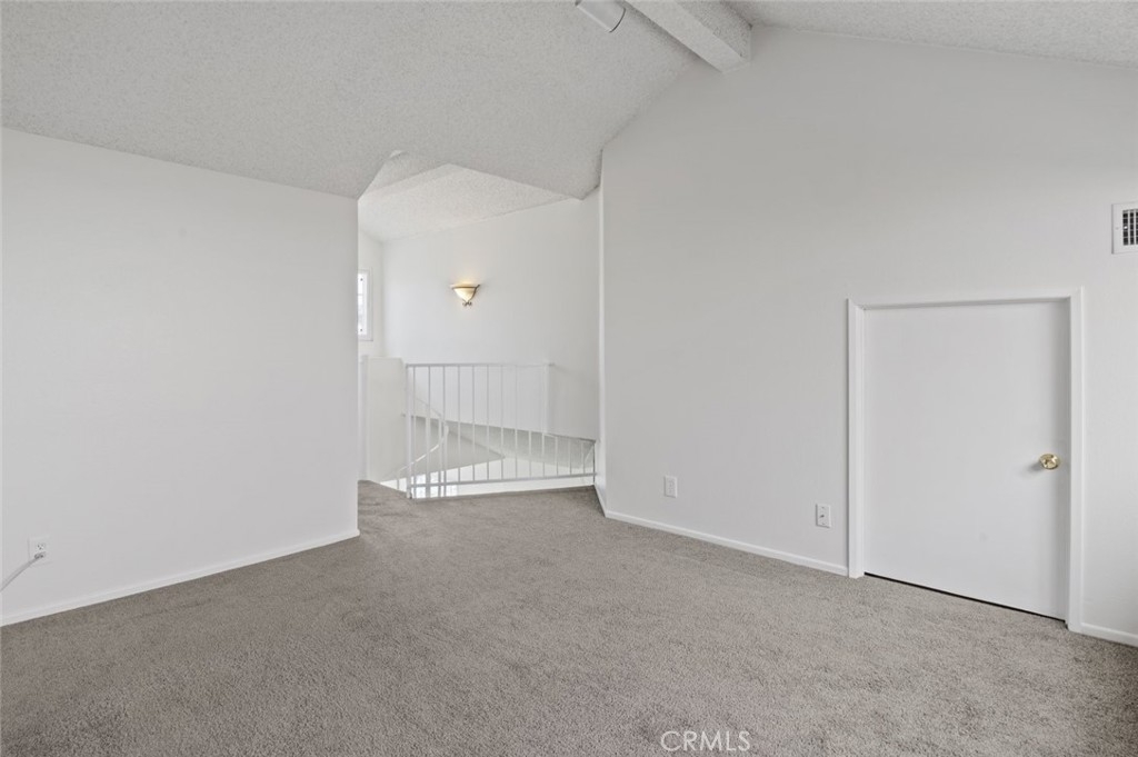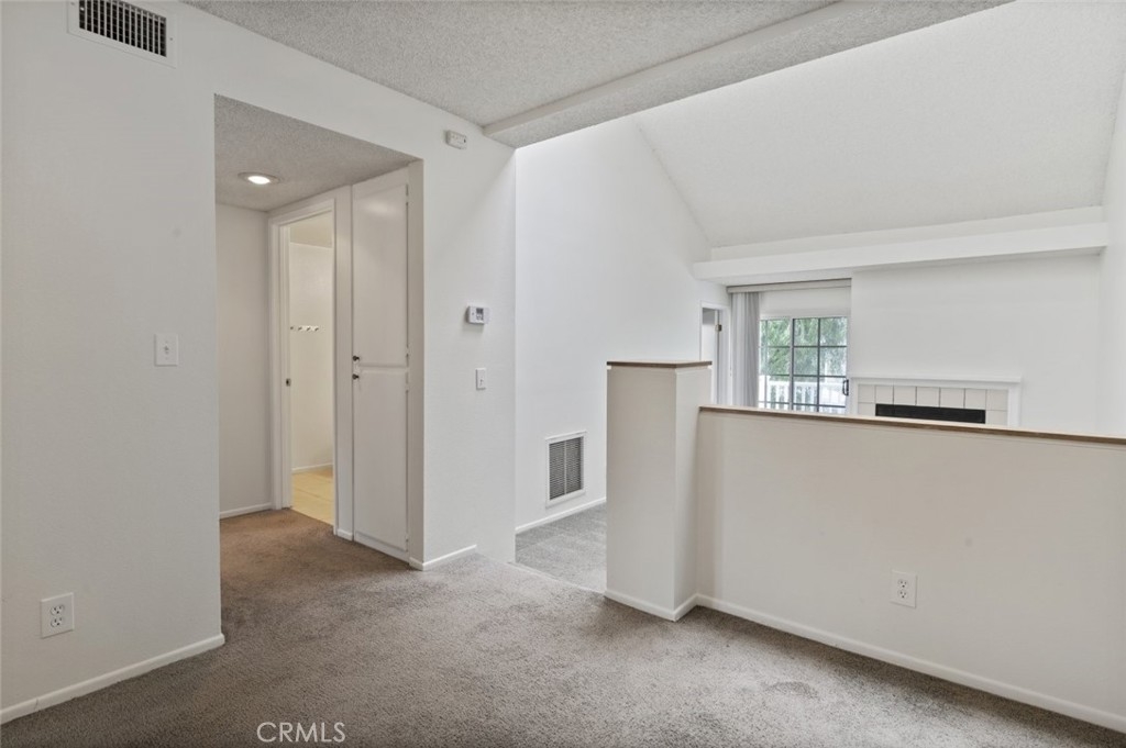 In Cambridge Glen of the sought-after city of North Hollywood, a most charming 2-bedroom, 2-bathroom condo with an open loft space awaits! Detailed by charming clapboard siding, behold a light and airy space featuring tall ceiling, well-sized French windows, and plush carpet flooring all throughout. Entertaining is possible with relative ease as the layout includes a dining room styled with a mirrored feature wall and opens into the large step-down living room which provides a tiled fireplace and sliding door access out to the private balcony that overlooks the community pool and spa. The user-friendly kitchen is equipped with ample wood cabinetry, neat countertops, built-in appliances, and access to the adjacent closet laundry area. Each bedroom is designed to draw in light from its large single windows and reflect off the large, mirrored doors of the built-in closet space. The primary bedroom features the exclusive benefit on a private bathroom. Up the spiral staircase lined with plush carpeting, ascend into the multi-purpose space of this loft offering multiple storage nooks. The home includes direct access to the attached 1-car garage and is provided with use of the community pool and spa. Located near CVS, Target, Starbucks, popular dining options, and more!