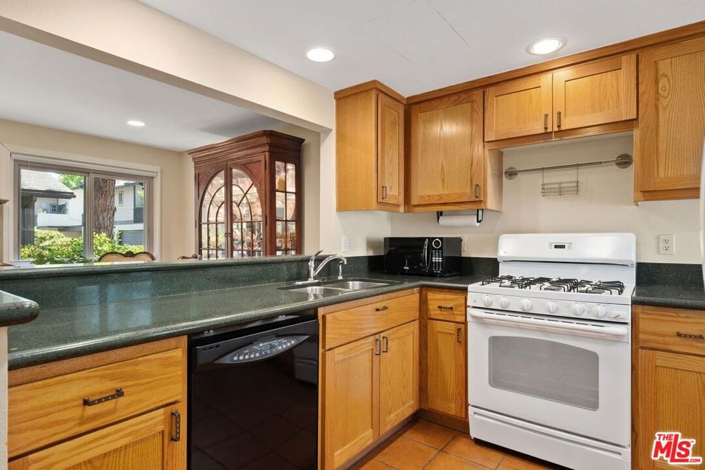 This gorgeous home shows true pride of ownership. Impeccably maintained, with 2 bedrooms and 2 full baths, this corner unit features beautiful hard wood flooring throughout. As you enter the home you're greeted by a spacious living room with a cozy fireplace. The dining area opens to the kitchen and the living room. The kitchen includes a quaint nook with breakfast table and built-in benches with extra storage. There's a dedicated utility closet with washer and dryer for your convenience. The sizable primary bedroom boasts a private patio, walk-in closet and en-suite bath. The home comes with 2 parking spaces; one in a shared garage and one carport space, along with ample guest parking. Enjoy the community pool & spa on warm days. Perfectly situated just minutes away from all your conveniences, the 5 and 170 freeways, and the Bob Hope Airport. **Please Note: No Open Houses. Showings by appointment only. Per Seller request: Must show proof of Pre-Qualification prior to showing and All Cash buyers must show Proof of Funds prior to showing.