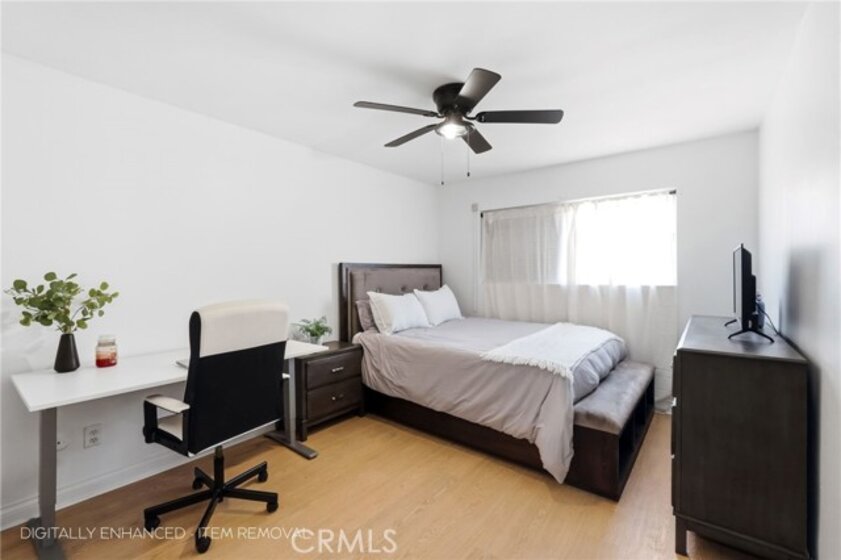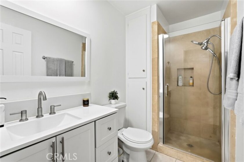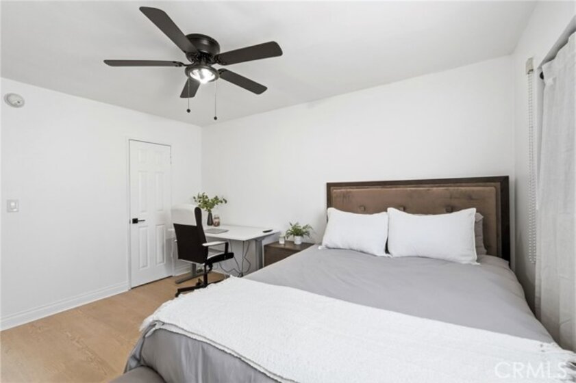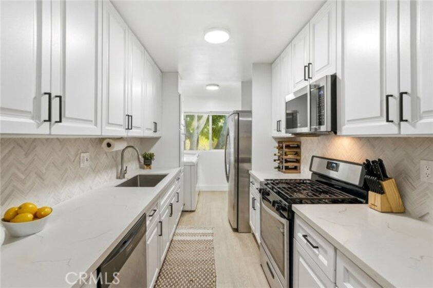 Welcome to this beautifully updated 2-bedroom, 2-bathroom second-floor condominium offering approximately 1,000 square feet of well-designed living space. This light-filled residence combines modern upgrades with comfortable living in a well-maintained 8-unit community. The home features a tastefully renovated kitchen with quartz countertops, updated cabinetry, and contemporary finishes, along with remodeled bathrooms that reflect the same elevated design. Luxury vinyl plank flooring, recessed lighting, and fresh interior paint enhance the clean, modern aesthetic throughout. The spacious living area opens through a sliding glass door to a private balcony, perfect for morning coffee or evening relaxation. Additional conveniences include an in-unit full-size washer and dryer and one designated covered parking space. With low monthly HOA dues covering water, trash, and building maintenance, this home offers both value and convenience. Ideally located in North Hollywood near shopping, dining, and commuter access. Shown by appointment only.