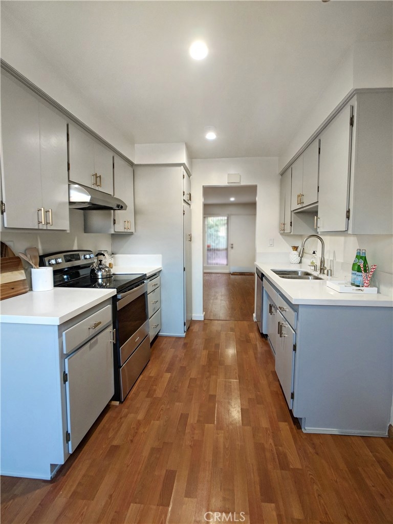 Gorgeous Contemporary NoHo Condo. This remodeled 2 story beauty has everything : Spacious layout, recessed lighting, new paint and flooring, Kitchen with sparkling Quartz counter tops, stainless appliances, double pantries, Master suite with walk in closet, pristine bath and so much storage. Small complex with only 12 units and low HOA dues.